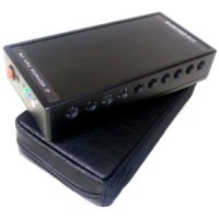 компактная модель с 8-ю излучателями ультразвуковой помехи; работает бесшумно, блокирует микрофоны на расстоянии до 7 м; имеет собственный аккумулятор, время автономной работы — 2 часа; в комплекте с прибором поставляется небольшой проводной пульт ДУ; для маскировки можно использовать сумку-клатч (идет в комплекте).